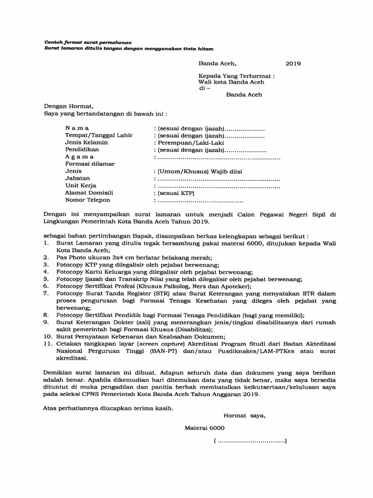 Contoh surat lamaran kerja cpns tulis tangan.